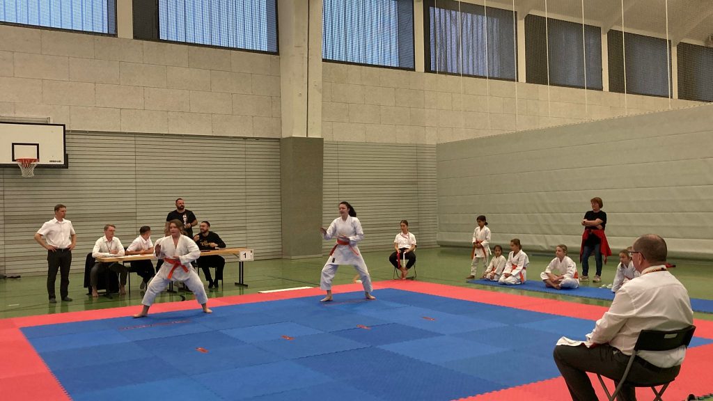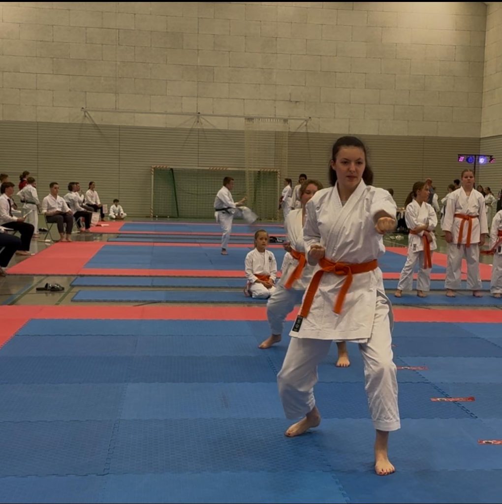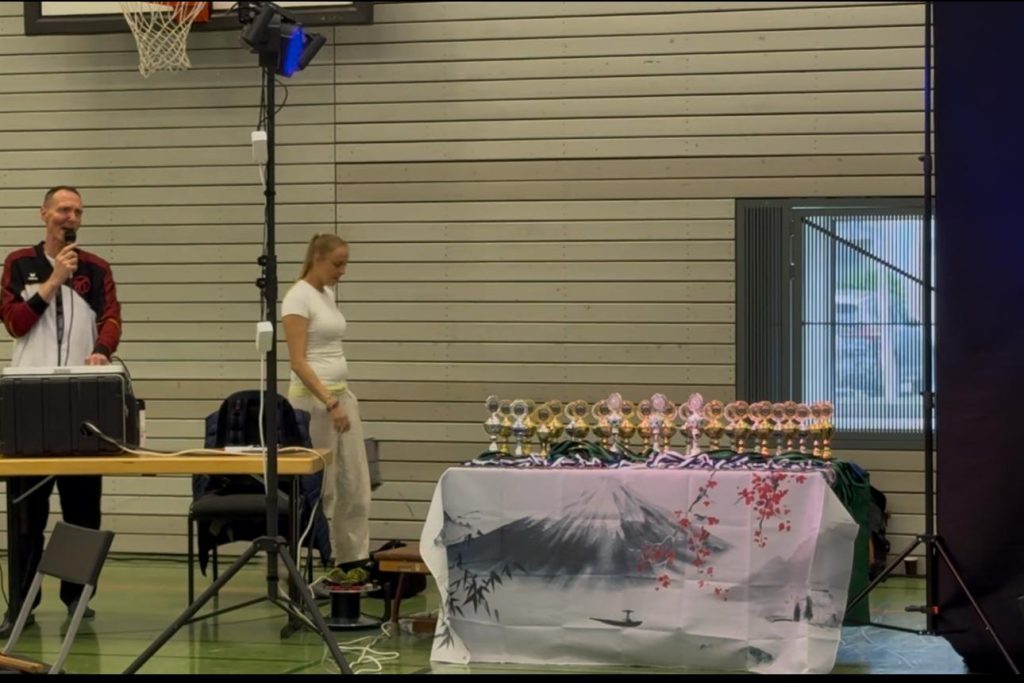 Dann waren die höhergraduierten Karatekas dran. In meiner Gruppe (für Kata und Kumite) waren wir nur 4 Leute, deshalb war ich direkt im Finale. Leider war ich zu nervös und machte viele kleine Fehler bei der Kata. Es folgten noch die Teamkatas und danach gab es schon die Siegerehrung. Die Siegerehrung fand im Sitzen und mit Musik statt.