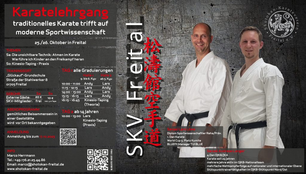 In knapp zwei Wochen veranstaltet unser befreundetes Dojo in Freital einen Wochenendlehrgang mit Andy Langer und Lars Löwe. Der eine oder die andere von Euch hat diese beiden exzellenten Trainer letztes bzw. vorletztes Jahr bereits kennengelernt.