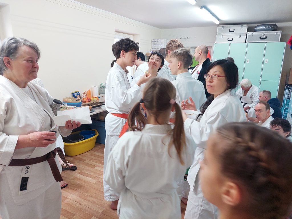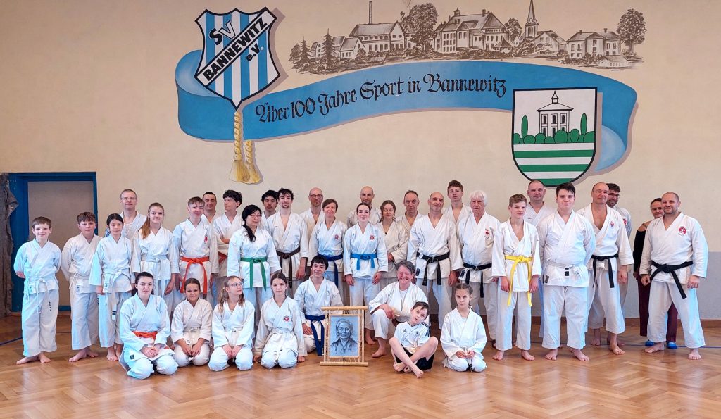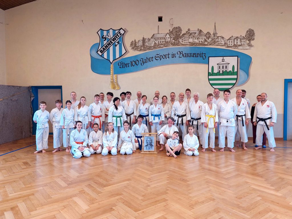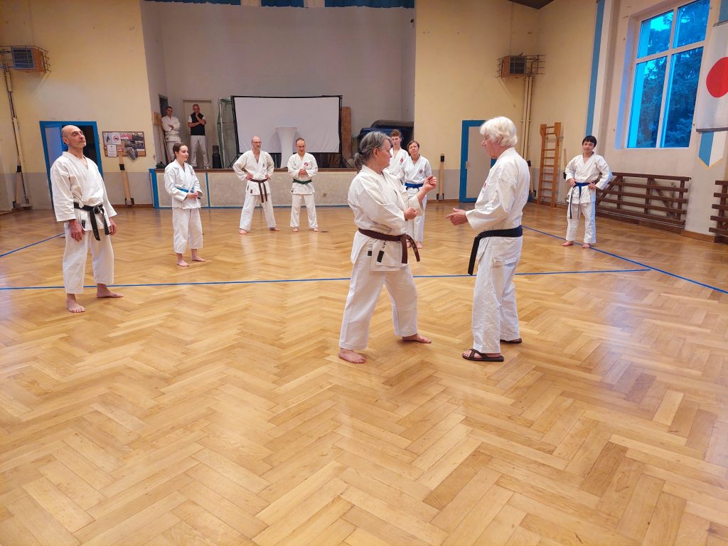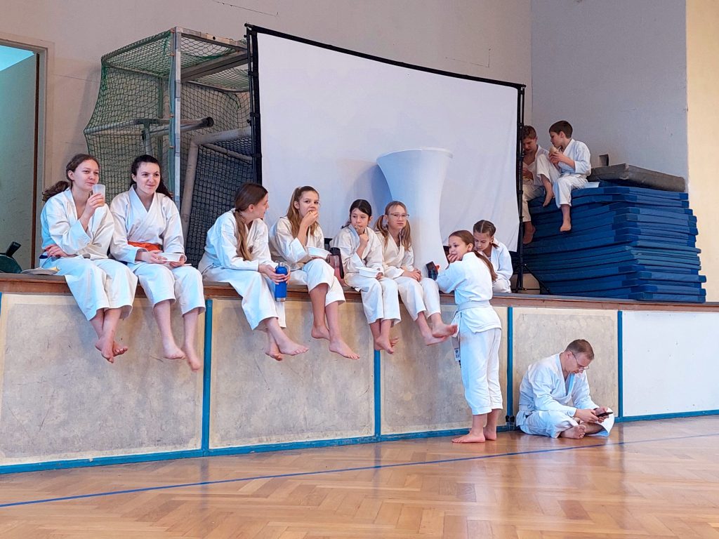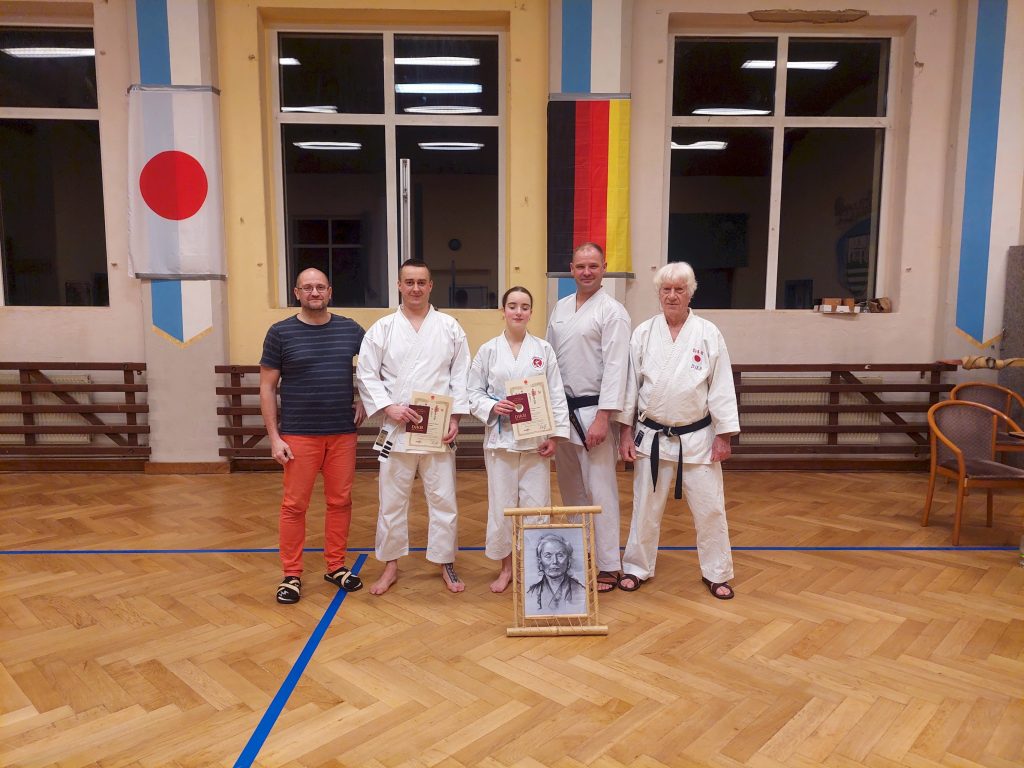 Wie immer fanden in der Woche vor dem Lehrgang unsere dojointernen Strichprüfungen statt, und am Lehrgangstag stellten sich zwei unserer Schüler der Kyuprüfung bei Sensei Axel. Erstmals hatten wir einen externen Beisitzer, was den Druck auf die beiden Prüflinge nochmals etwas erhöht haben dürfte.