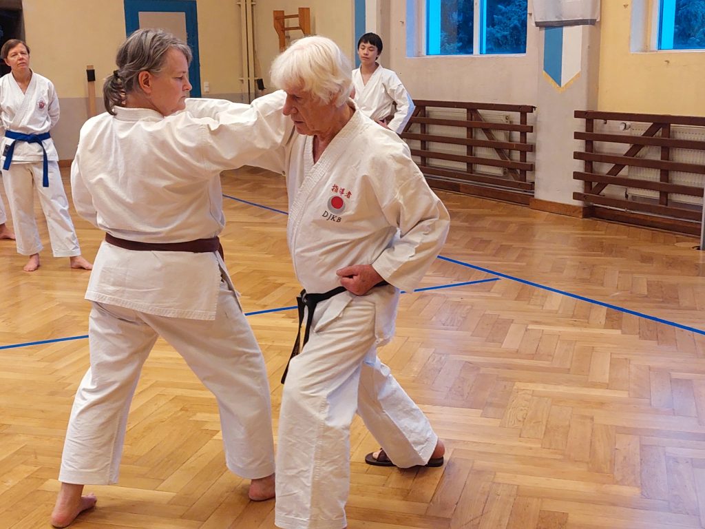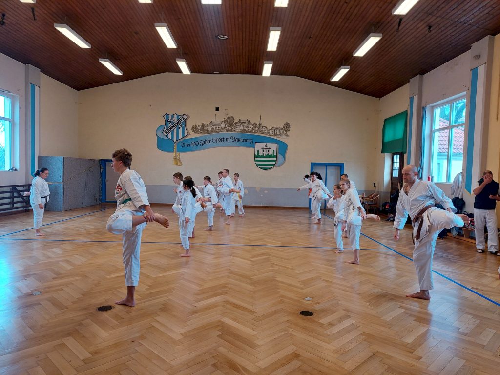 Nach einer ordentlichen Erwärmung, war die erste Einheit gefüllt mit interessantem Techniktraining im Kihon und zum Ende noch Katatraining.