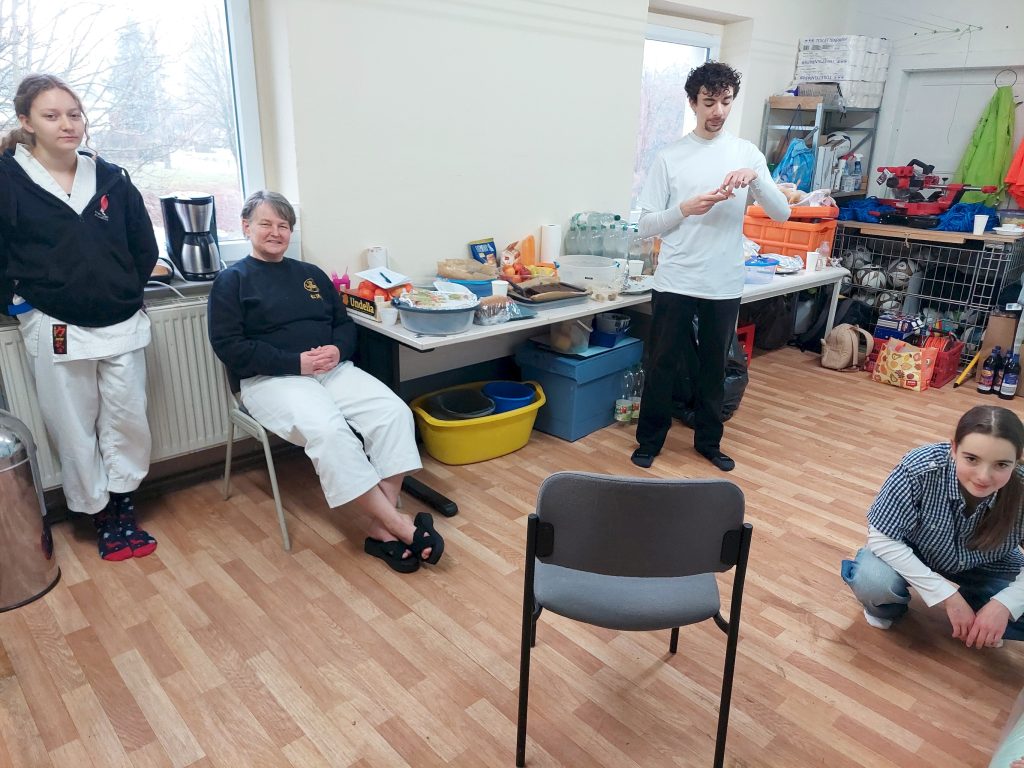 Von 13 Uhr bis 14:30 Uhr fand die zweite Einheit statt. Darin lernten wir im Partnertraining einige neue Selbstverteidigungstechniken, sowie Kraftübungen.