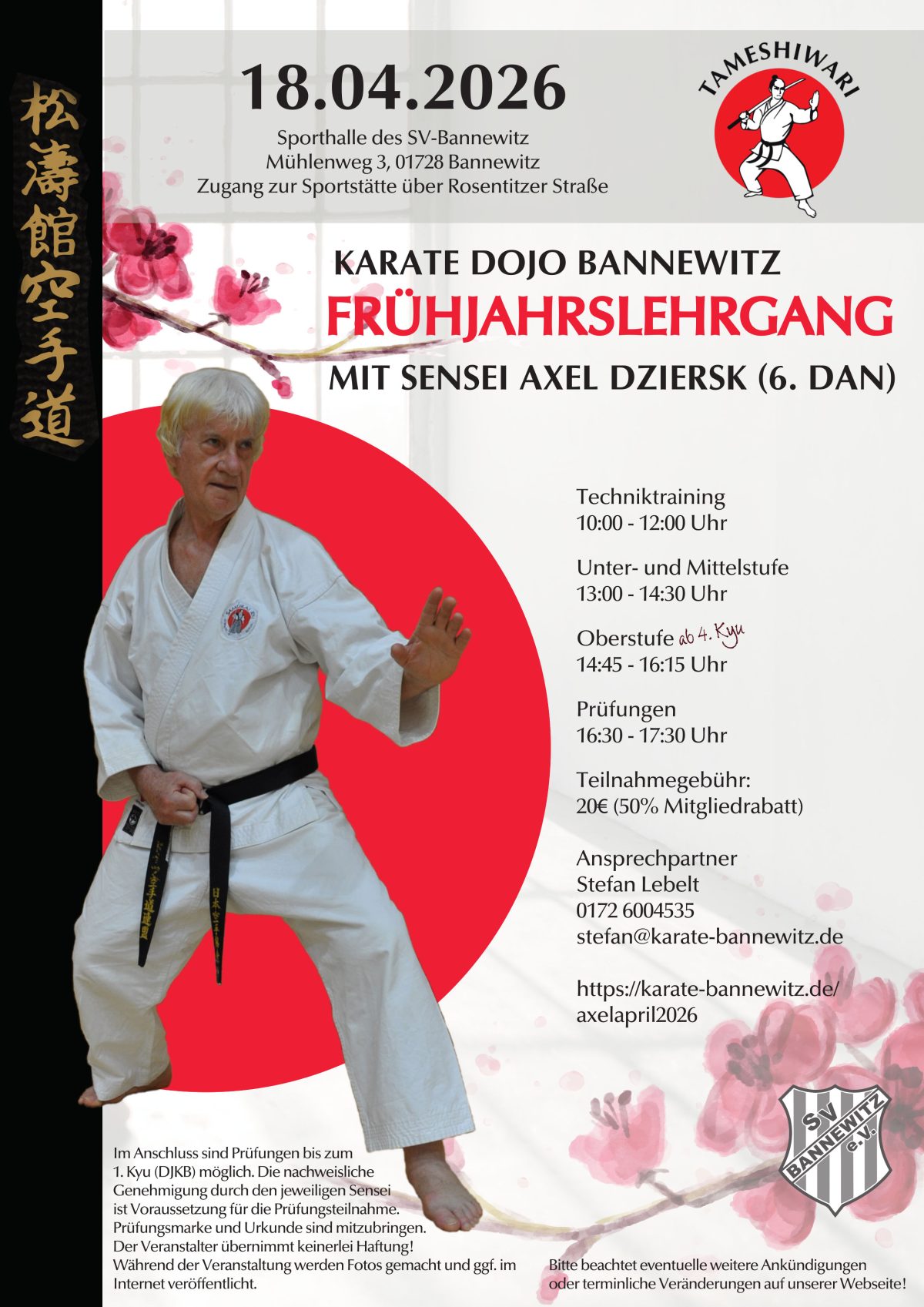 Am Samstag, dem 18.04.2026 besucht uns Sensei Axel Dziersk zum alljährlichen Frühjahrslehrgang.