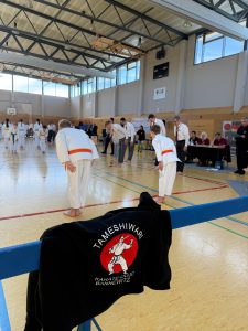 Ich hatte nun viel Zeit und konnte den Freitalern bei ihrer Teamkata zu sehen. Isabell ist ja leider krank geworden. Hanna und Clara fanden ein Mädchen aus dem Oberviechtacher Dojo und sie liefen die Teamkata. Leider reichte es nicht für einen vorderen Platz. Dann schauten wir uns die Freikämpfe an. Es ging sehr „brutal“ zu und ich verabschiedete mich von meinen Gedanken, da mal mit zumachen.